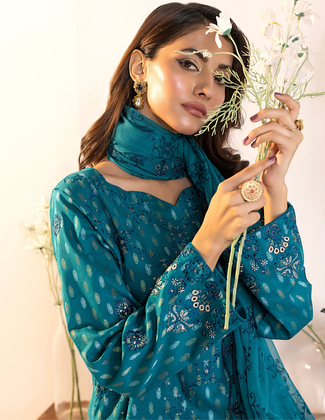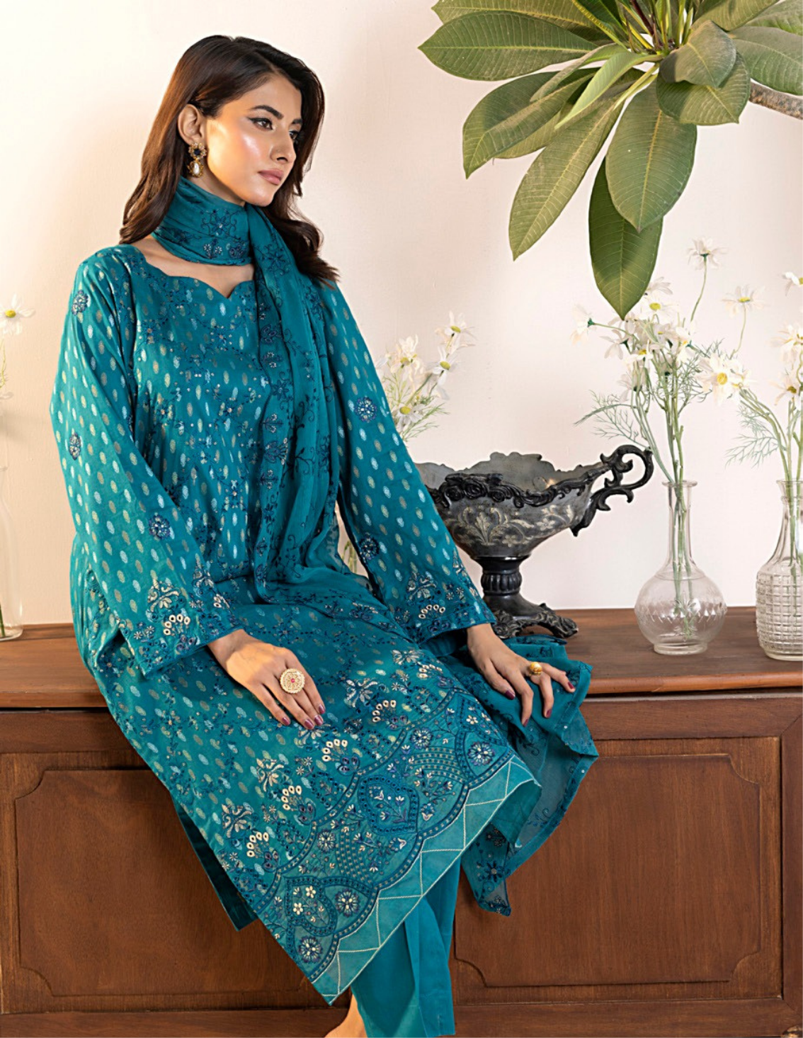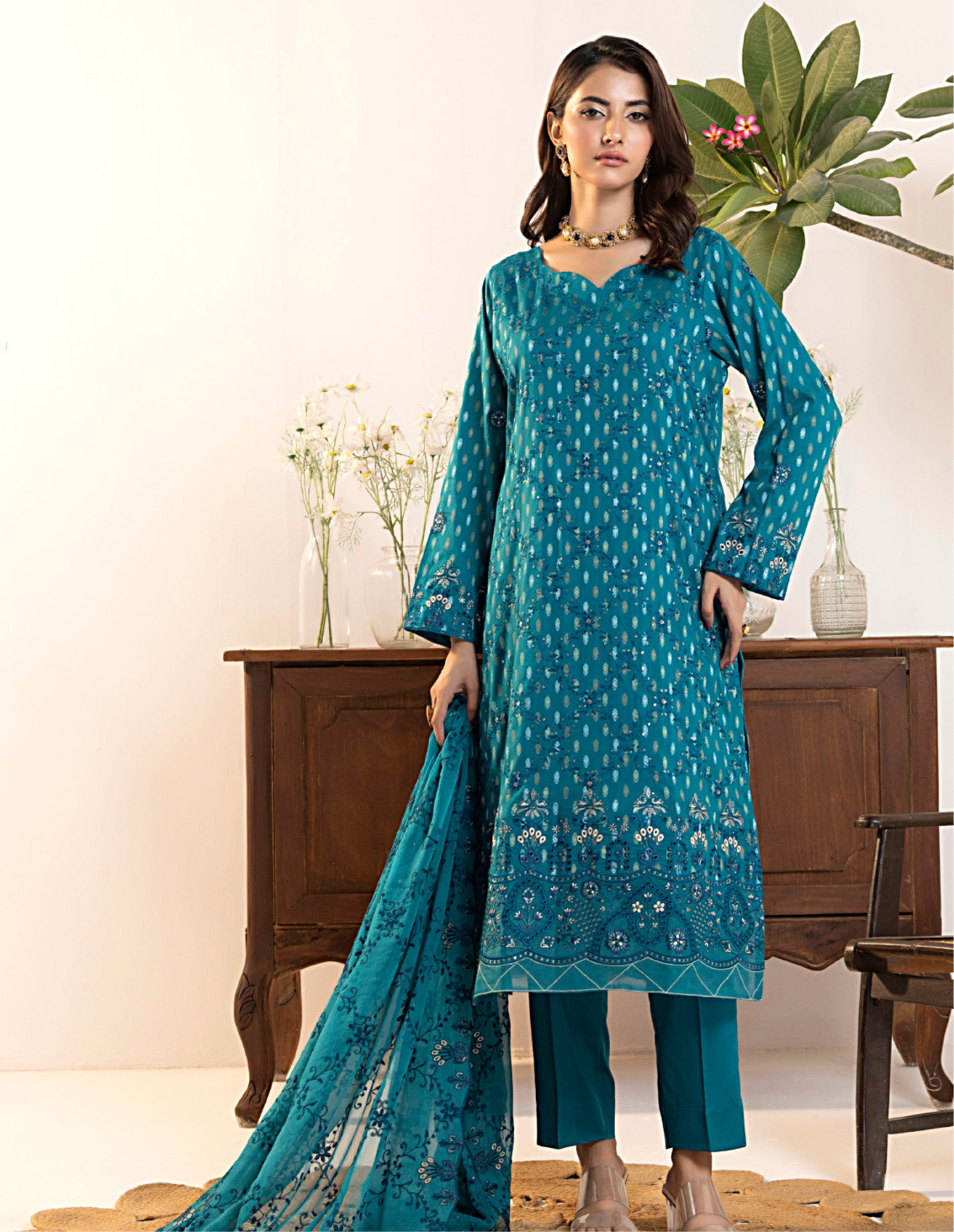 Shirt: Exclusive Embroidered Broshia CottonDupatta: Heavy Embroidered ChiffonTrouser: Fine Dyed Cambric Cotton