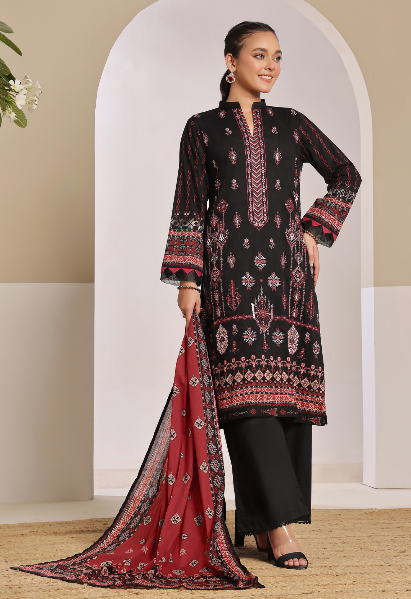 •) UNSTITCHED Digital Print 2 Head Embroidered Lawn Shirt •) Digital Print Lawn Dupatta•) Fine Dyed Cotton Cambric Trouser.