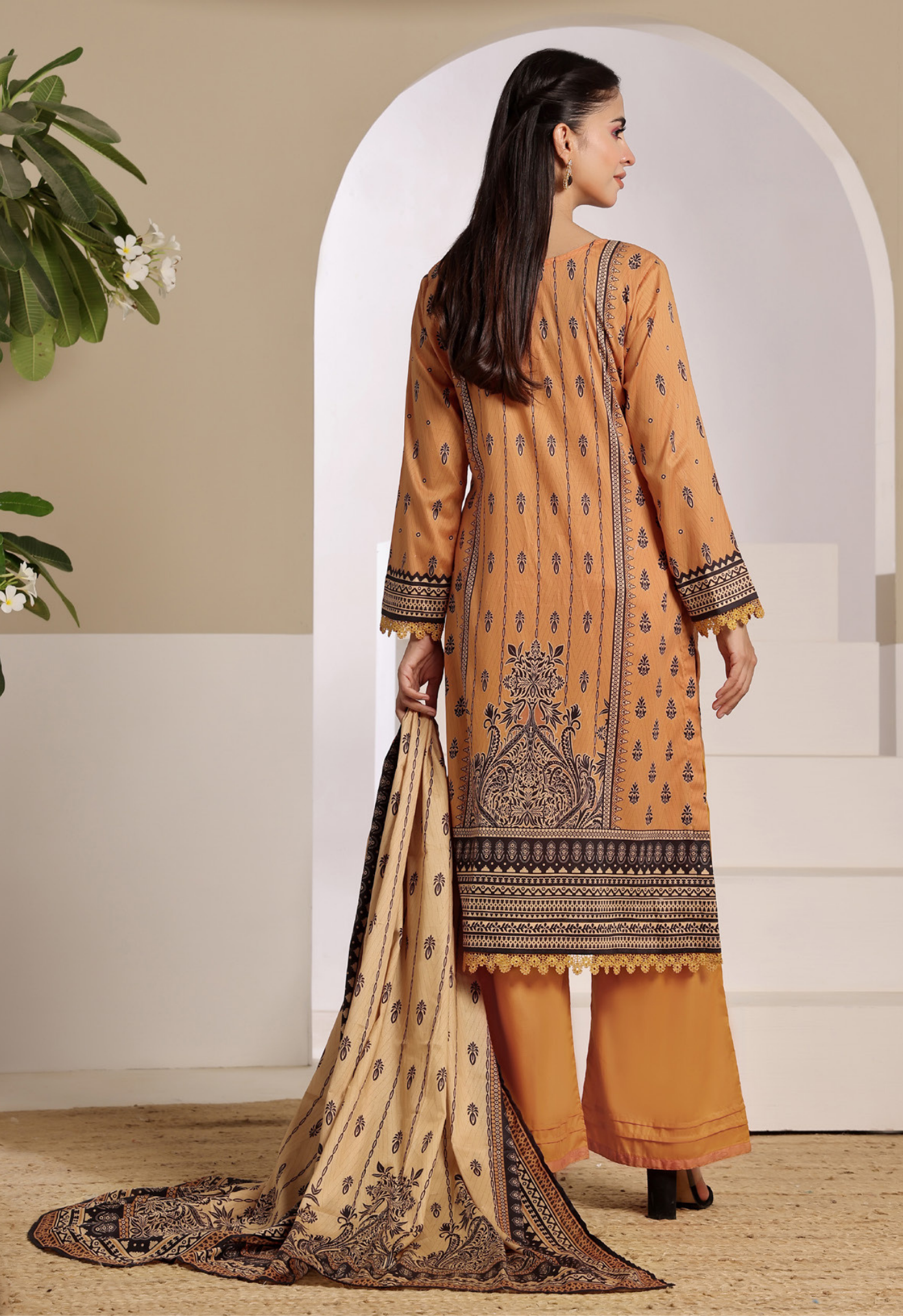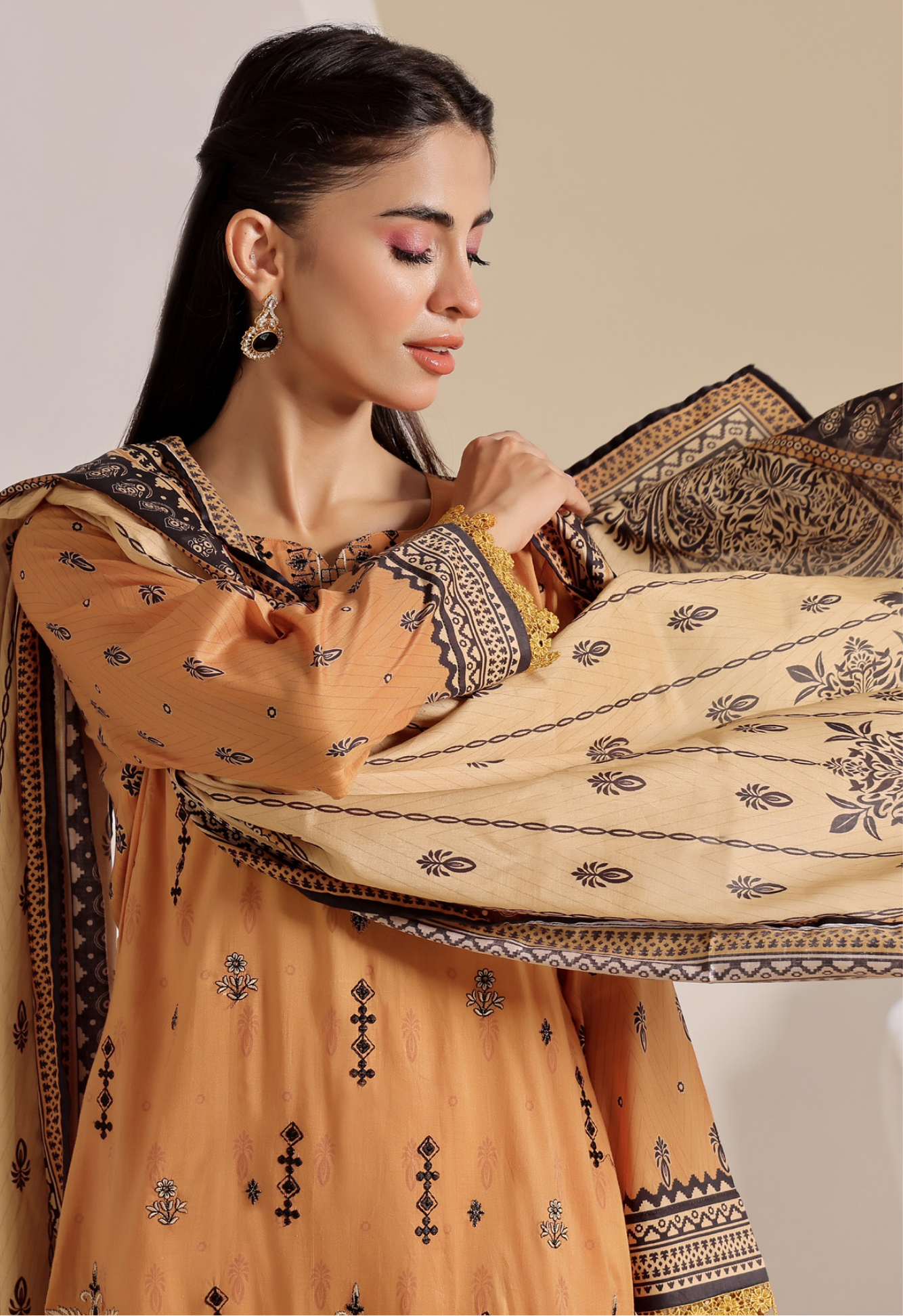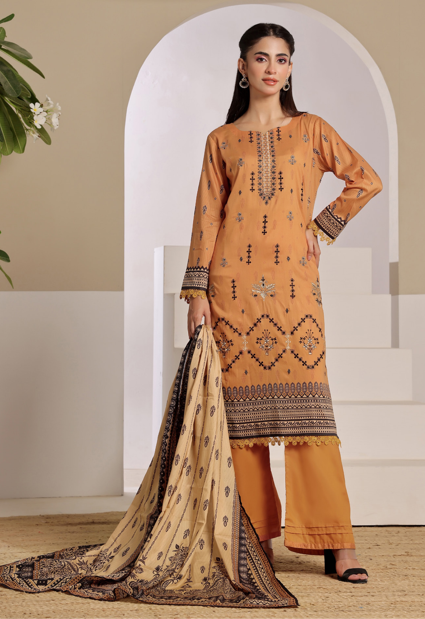 •) UNSTITCHED Digital Print 2 Head Embroidered Lawn Shirt •) Digital Print Lawn Dupatta•) Fine Dyed Cotton Cambric Trouser.